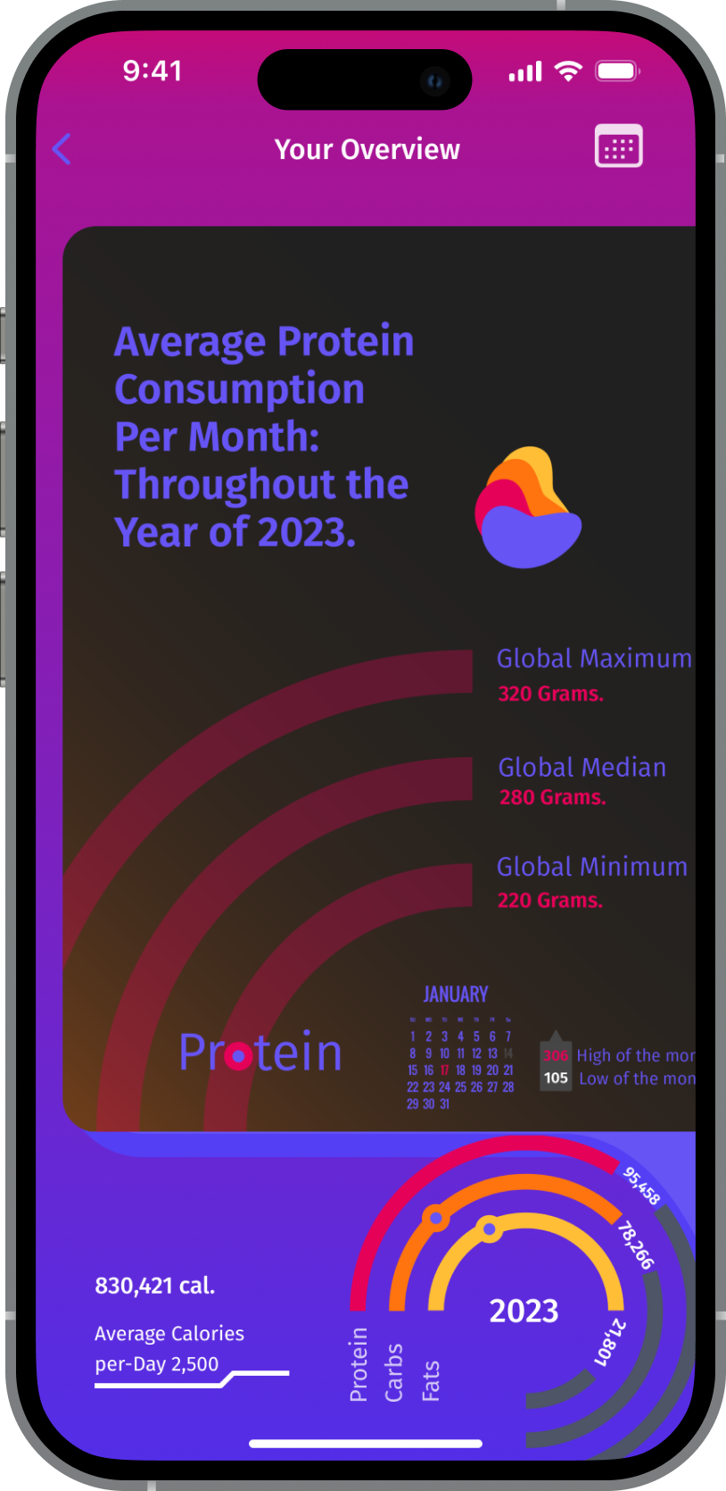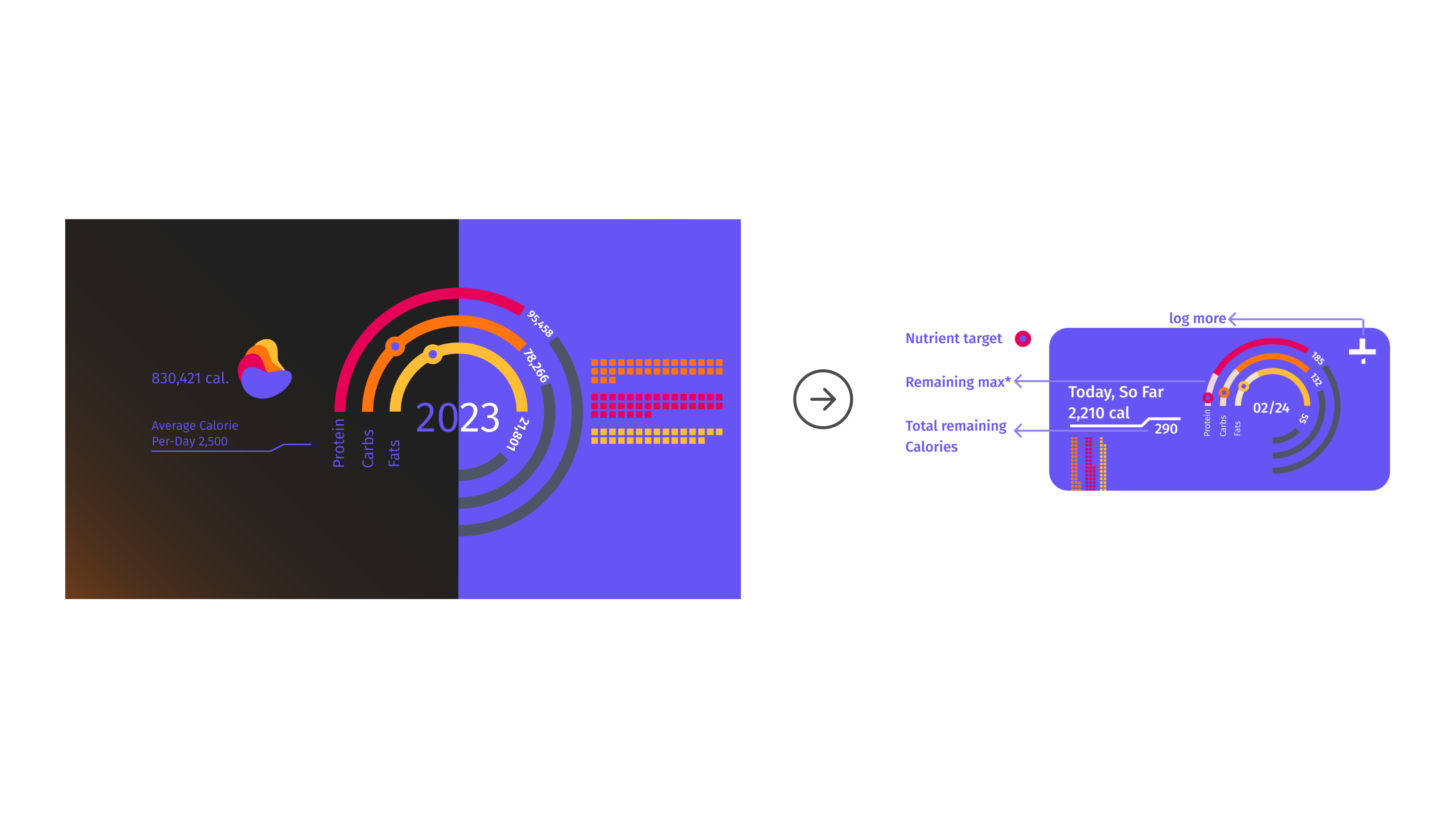 - Included visual distinction between remaining and consumed calories.