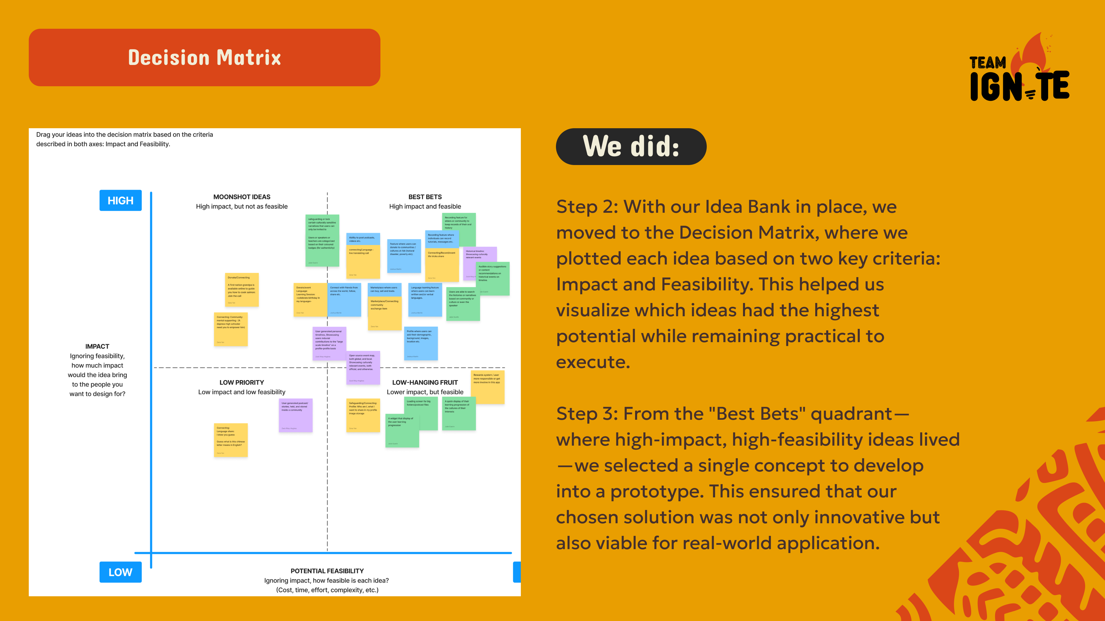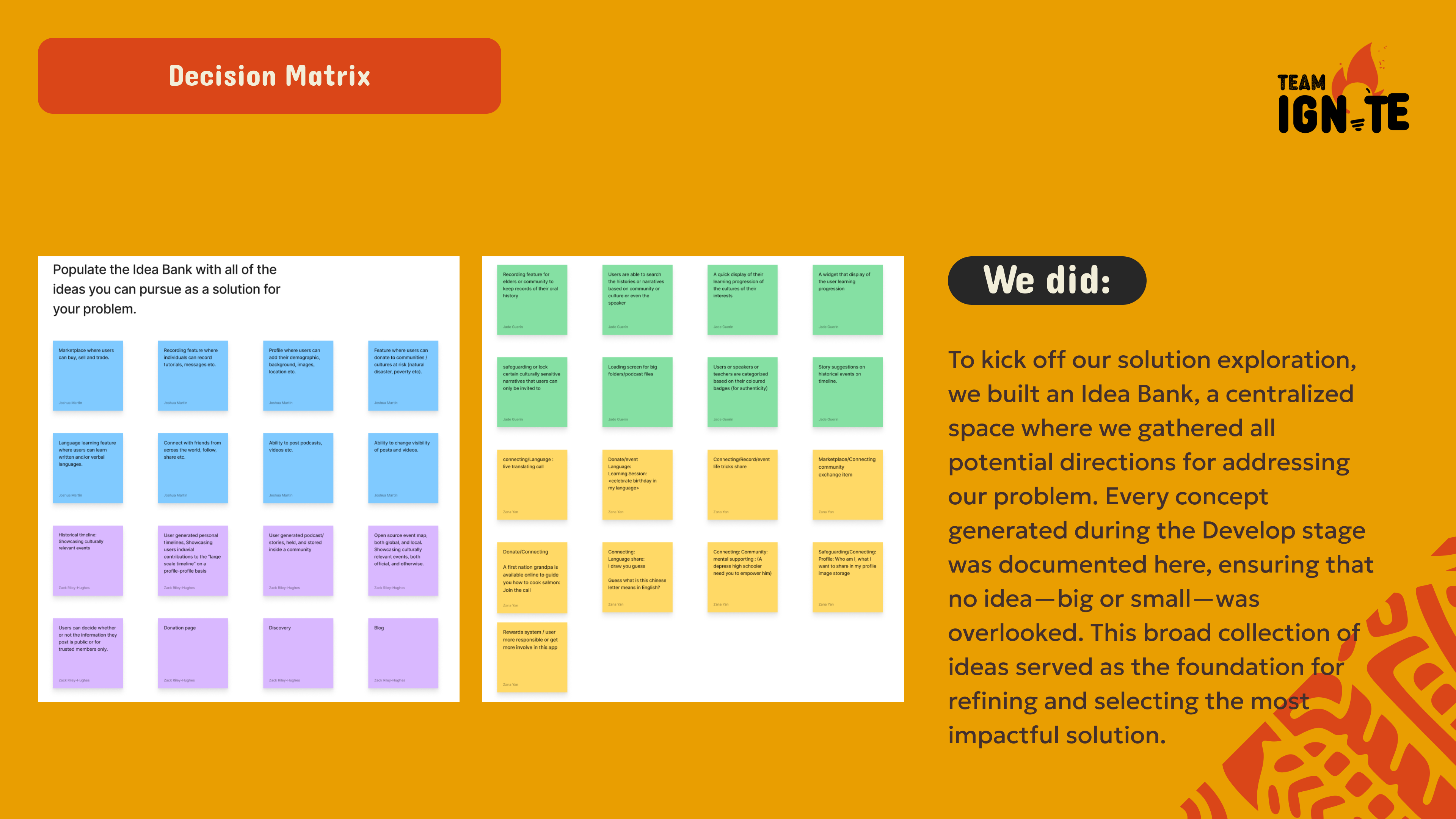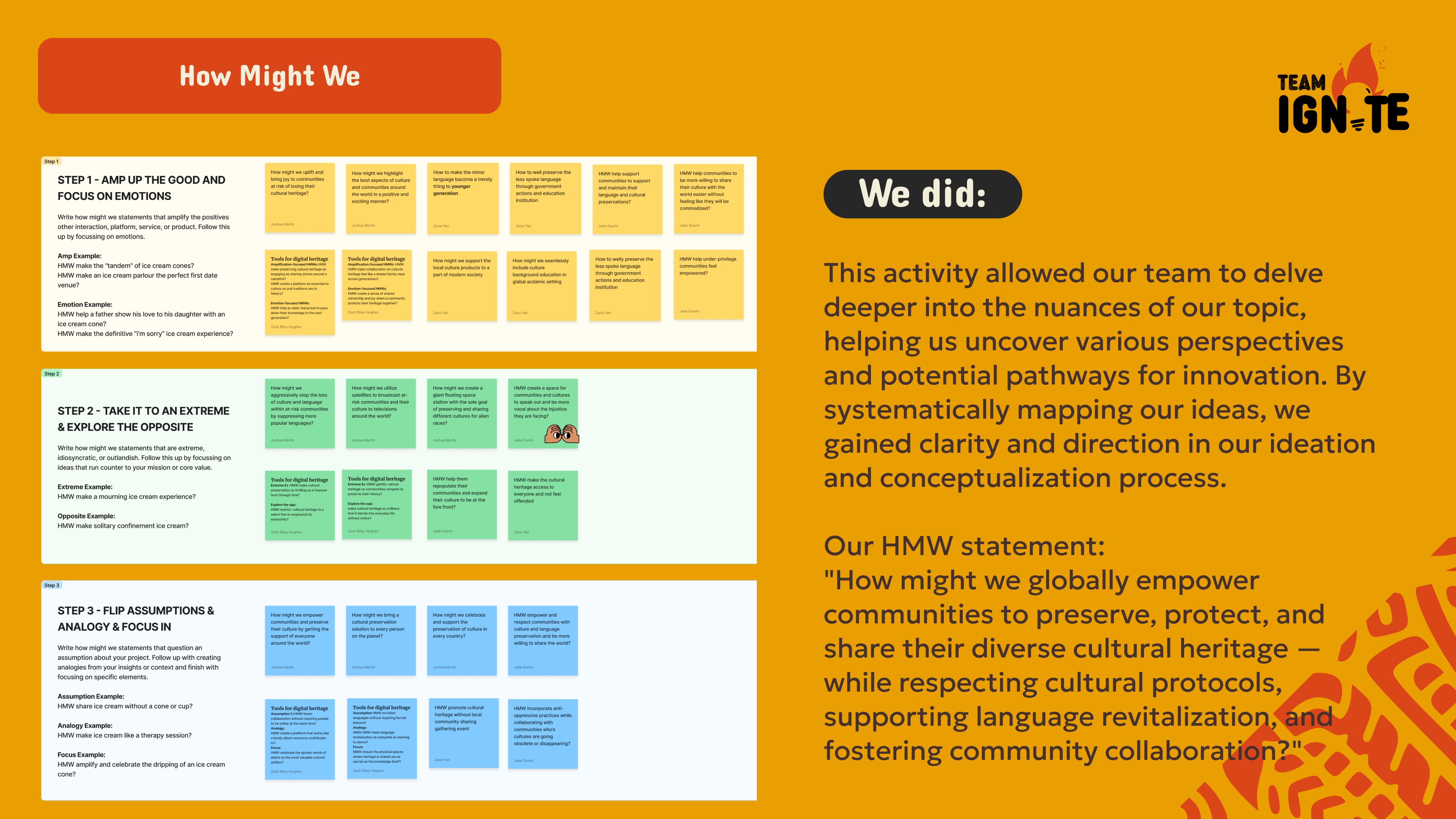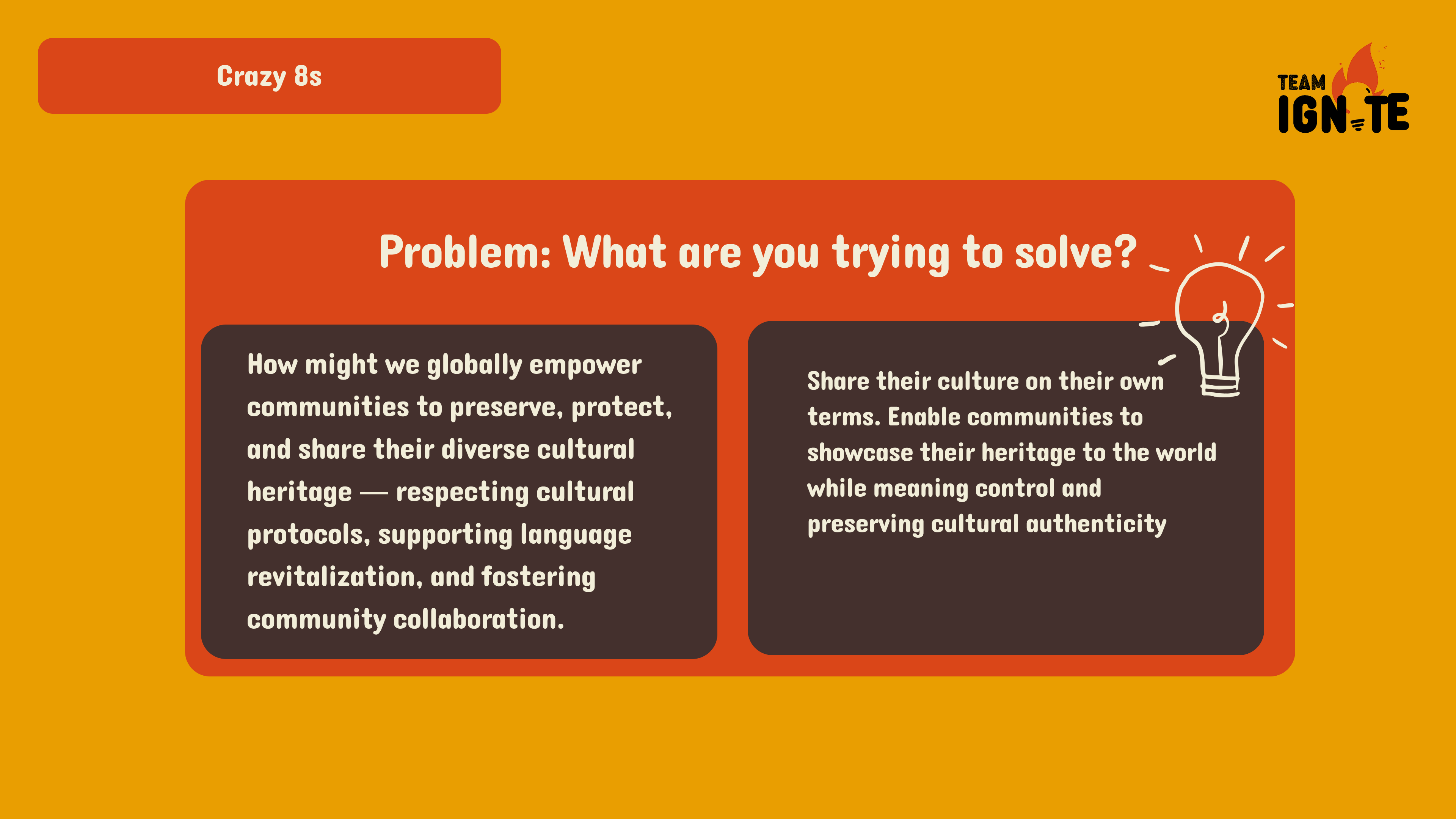 How We Did It: Leveraged collaborative research methods to uncover key cultural preservation challenges. Engaged in rapid ideation, prototyping, and iteration to refine our concept. Delivered a polished pitch to industry professionals, demonstrating the app’s potential impact.