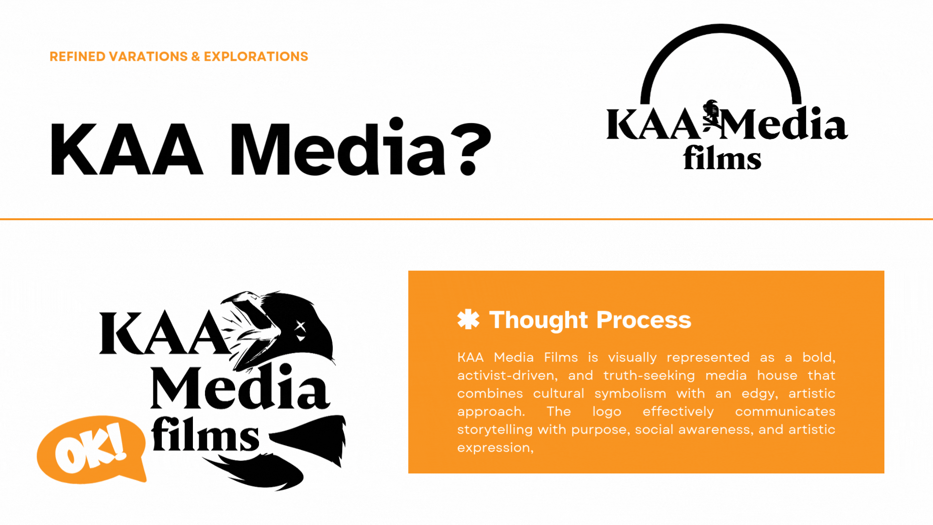 KAA Media Films is visually represented as a bold, activist-driven, and truth-seeking media house that combines cultural symbolism with an edgy, artistic approach.